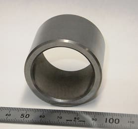 Oil-impregnated sintered bearings are widely used as sliding bearings under light-load conditions such as small motors, however have been used in parts requiring high-loads, such as the joints of construction machinery. Bearings for high-load applications require steel materials with excellent wear-resistance machined with special heat treatment such as carburization for increased strength, followed by a cutting process for the inner diameter surface. Compared to bearings for light-load applications that are manufactured using only a pressing process, the additional work processes required for bearings for high-load applications has long presented a challenge.