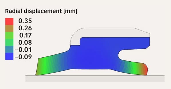 The major capabilities of the software are covering both manufacturing (shrinkage from the mould tooling to finished geometry) and performance (installation on a shaft and/or inside housing) predictions.