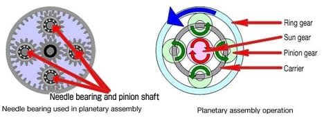 *Planetary assembly: A gear shifting mechanism used in ATs that adjusts output speed and torque by utilizing a combination of rotation and revolution movements of multiple gears.