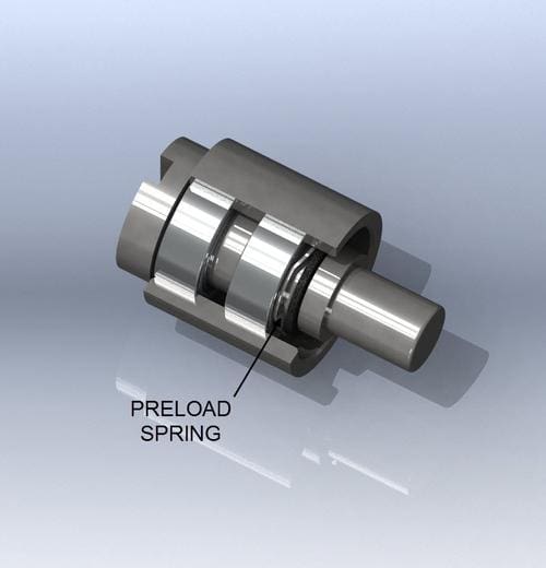 In these applications, where positional accuracy must be controlled to precise levels, radial (and axial) play in the bearing is usually unacceptable. Application of a preload, described previously, is recommended. The principal benefits are precise shaft positioning (no free motion), control of axial and radial compliance, and shared loading between bearings. In addition, shaft rotational accuracy is greatly improved, minimizing runout characteristics.