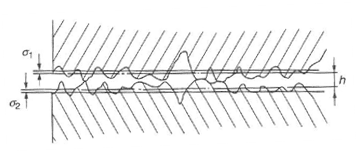 Figure 2: Detail of surface ball-rings in contact with mixed lubricants. In this method occasional contact of surfaces is possible. [Tedric A. Harris, 2007, Advanced Concepts of Bearing Technology, CRC Taylor & Francis Group, 140]