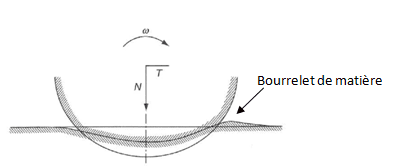 The area of contact between the balls and ball tracks has an elliptical shape more or less elongated depending on the radii of curvature selected for the ball in comparison to the diameter of the ball tracks. A relative slipping of surfaces is caused by the elasticity of the material, and only two points of the ellipse are rolling without slipping, in the case of a deep groove bearing radially loaded.