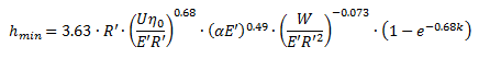 - h min = minimum thickness of the film of lubricant formed [mm]