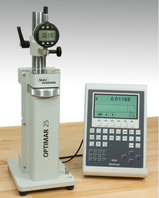 Said George Schuetz, Director Precision Gages for Mahr Federal, “If you already have a quality control department that is responsible for checking parts, a long range indicator calibrator like the OPTIMAR 25 would handle all of the basic hand tools in your operation. With a set of blocks and the calibrator, you would have all the tools needed to bring outsourced calibration services in house.”