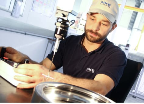 2 Thomas Langer, NKEwbslAs member of German research association Forschungsvereinigung Antriebstechnik e.V., NKE will also have the opportunity to use Workbench. Applications like Mathcad, Minitab and FAMOS are available for test planning and measurement analysis.” In addition to the new and existing test rigs for bearings with an outer diameter of up to 380 mm and 160 mm respectively, NKE’s test centre boasts a range of other equipment for materials, dimensional and function testing: spectrometers and hardness testers for material testing, height gauge, form and roughness gauges, a 3D CNC measuring machine, roundness and surface testers, a dimension measuring station for large bearings as well as vibration and noise testing equipment.