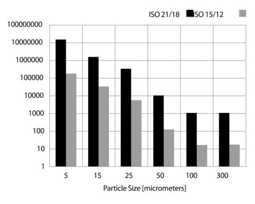 FIGURE 7 – Particle size distributions for two specific ISO codes