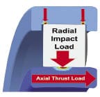 In gearboxes with helical-gearing, simultaneous radial impact and axial loading of a misaligned roller is known to decrease bearing life.