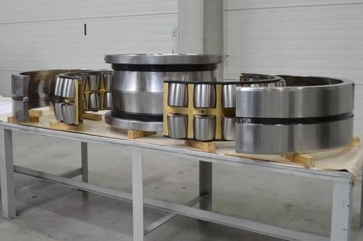 Special bearings denoted PLC 612-45.T3 and PLC 412-64.T3, destined for the imposition of main cylinders in vertical mills, form part of one of the project executed for a Chinese customer. PLC 612-45.T3 is double row tapered roller bearing with pin-type cage and X arrangement of the rolling elements. PLC 412-64.T3 is a single row cylindrical roller bearing with massive, brass cage.