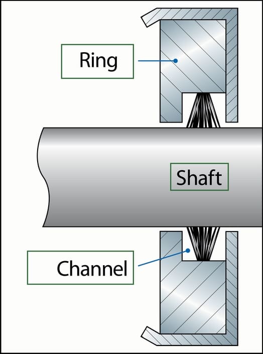 For environments where the motor will be exposed to excessive amounts of dirt, dust, or other debris, it may be necessary to protect the ring’s fibers with an o-ring or v-slinger or install the ring inside the motor’s housing. Bearing isolators with built-in circumferential grounding rings are also available.