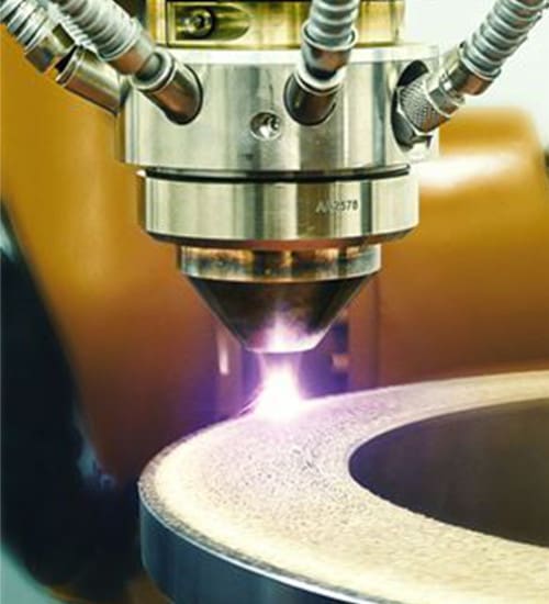 Today, latest-generation lasers can be used with a powder nozzle for direct metal deposition, yielding considerable benefits: the metal alloy is fed in the form of a dry powder via the nozzle coaxially to the laser and melted onto the inside of the concave steel bearing shells. The laser permits accurate partial attachment of the alloy. It is only necessary to apply the expensive alloy to about 20% of the surface using this technique, compared to 100% with the traditional casting method. Use of a laser also saves time and energy, since only a small amount of metal needs to be melted in each case.