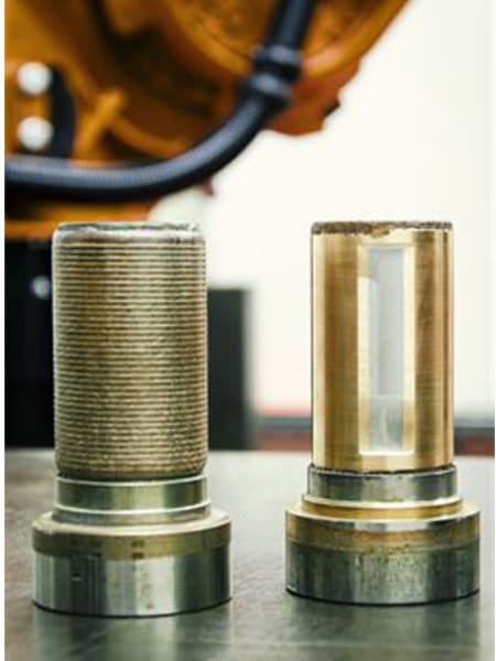 ADMOS is now taking a new approach to making sliding bearings: with a robot-assisted laser system, a six-kilowatt fiber laser, and two high-power coating heads in the form of powder nozzles. Something that was impossible with the conventional casting process is now becoming reality: namely the use of copper-based materials such as CuSn and CuPb. One of the many advantages of the new approach is that different materials now bind more firmly to one another. All in all, the new method makes it possible to completely eliminate several steps while minimizing the required finishing work afterward.