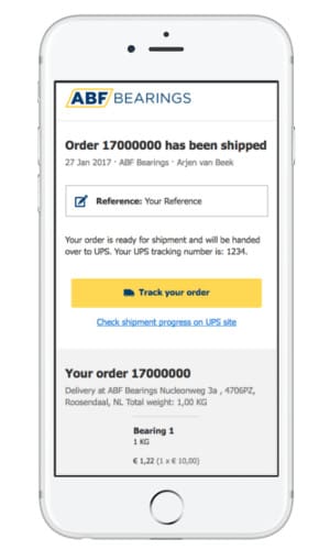 From now on customers from ABF will receive an email when their order at ABF has been shipped. This email will include a tracking number for shipments with UPS. For their other carriers (DPD, TNT or Schenker) ABF will inform its customers when their order is ready for shipment.