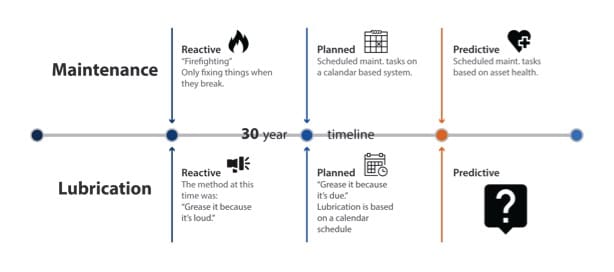 Over the better part of forty years, maintenance departments transitioned from a breakdown strategy to planned, task driven, interventions based on time in service. Replacing reactive firefighting with planned tasks reduced waste and extended life. Further evolution to a predictive model delivered even more value. This transition happened for maintenance in general, but did lubrication processes keep pace?