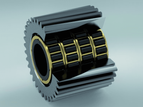 Burnished four-row cylindrical roller bearings used as integrated planetary bearings in wind turbines