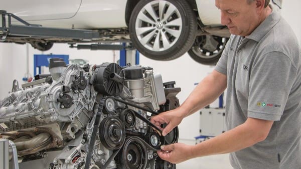 All technical training seminars conducted by the Automotive Aftermarket business division follow a proven structure. A compact theoretical part gives basic knowledge, followed by a practical part in which participants work with, and on, the products themselves. The Automotive Aftermarket business division has developed so-called training racks for this purpose. Using these transportable modules, the correct way to replace a part – like here replacing the belt of the FEAD – can be watched from all sides. “This really appeals to our participants. Working with your hands like this can only be truly learned, if it’s observed from every angle,” explains Kuhlmey.
