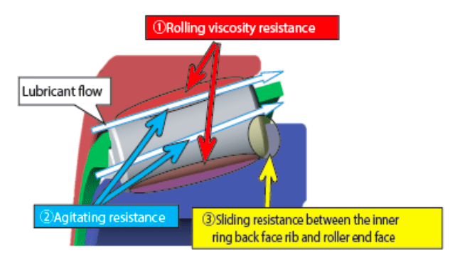 The conventional way to reduce the torque was to concentrate on sliding resistance and viscous rolling resistance. Later the influence of oil agitation resistance was recognized and considered for further improvement. These contributing factors to the friction torque and their relative influence are shown in Fig. 1.