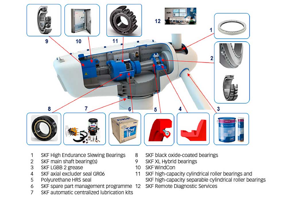 Fig. 1: SKF has developed a wide range of products, services and solutions dedicated to wind energy.