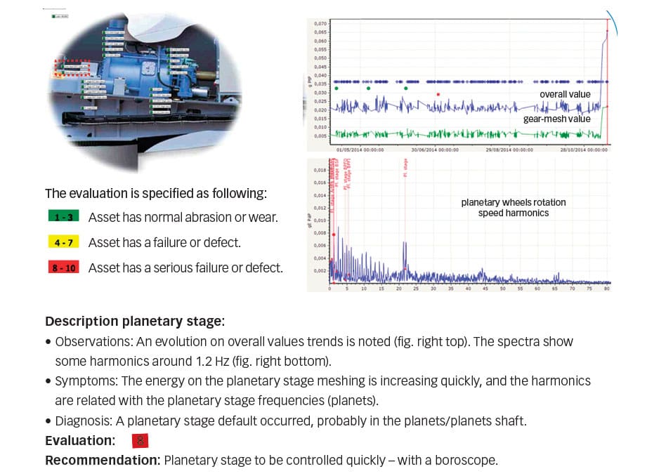 From experience it is clear that not all the components in wind turbines need the same level of expertise to be analysed. For example, detecting a generator bearing issue is quite easy, but for planetary bearings and gears, identifying an issue is much more problematic. Consequently, SKF has developed specific algorithms that focus on the detection of problems related to the planetary gearings themselves.