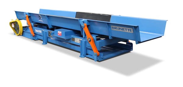 The Brunette SmartVIBE Vibrating Conveyor is a uniquely simple vibrating conveyor. Utilizing a patented torsion bar system, Brunette has eliminated all coil springs from the conveyor. The design optimizes low cost maintenance and maximum up-time efficiencies and is fully balanced. The conveyor maximizes throughput with a secondary trough, and even adjust feeds speeds with the use of a VFD without having to stop for rebalancing. The Brunette SmartVIBE is suitable for many industries including sawmilling, biomass, recycling, pellet manufacturing, plywood, OSB, food processing and agro industries. Available in different widths and lengths complete with size specific screening options and metal detection.