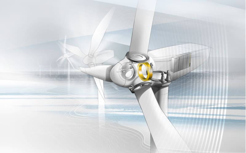 Power generation by wind turbines is playing an increasingly important role in energy policy. Therefore, increasing efficiency is an important prerequisite for further growth in the industry. The wind turbine rotor, which is supported by a main bearing, is a key factor. Liebherr offers moment bearings in two main designs: depending on the requirements, the prevailing loads and customer specification, double-row tapered roller bearings or triple-row roller bearing slewing rings are used. The optimised sealing concept for slewing bearings ensures that the inside of the bearings is protected against dirt and moisture and, above all, prevents the lubricant from escaping.