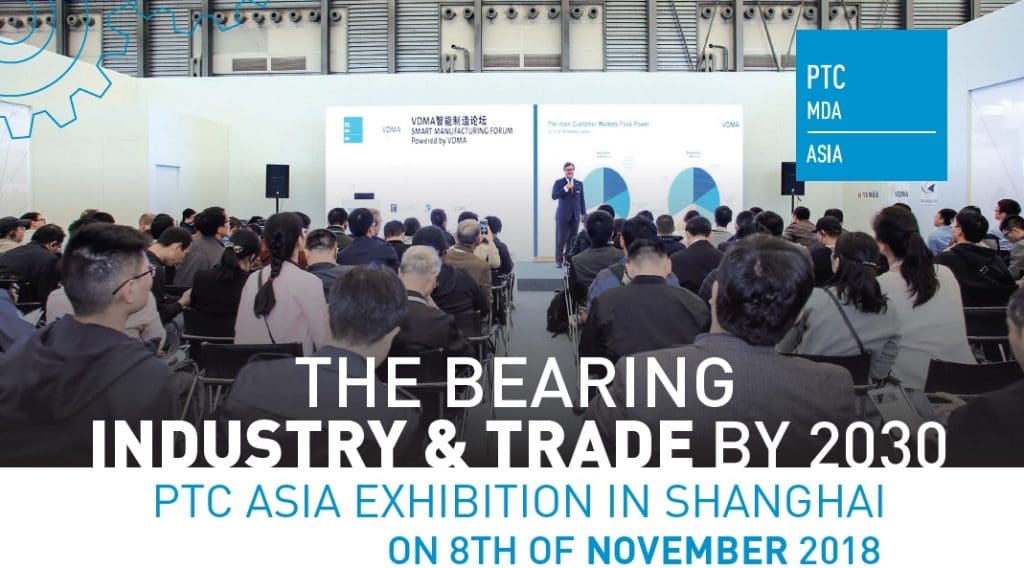 Shanghai, – October 03, 2018 – The next BearingEXPO conference will be presented on 8 November during the PTC Asia show in Shanghai, at the conference room in the bearing and power transmission Hall 2. Bearing Industry & Trade by 2030 presentation, How IIOT will optimize your bearing applications and Bearing Rout Cause Failure Analysis workshop will cover both the commercial and technical aspects for the bearing industry professionals.