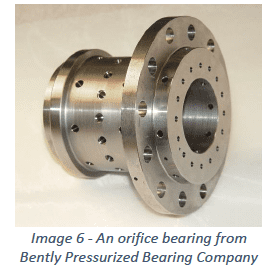 Out of all the compensation techniques, orifice compensation is the most popular and widely used. This is also the technology Don Bently employed when he started the Bently Pressurized Bearing Co. Yes, after selling Bently Nevada, Don thought he could solve many of the problems he had identified with his eddy current probes by employing aerostatic bearings, but that is another story. Orifice compensation typically uses precisely sized orifices that are strategically placed on the bearing face and often combined with grooves to distribute the pressurized air across the bearing face.