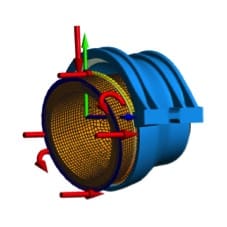 Forces and supports can be defined directly on imported 3D-elastic parts. This allows to add forces on a housing or to define additional stiffness supporting a housing.