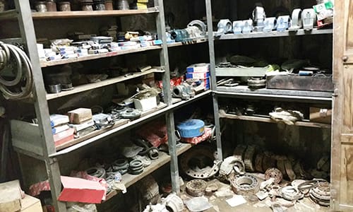 Here is what an on-site storage area for rollers and bearings can sometimes look like: