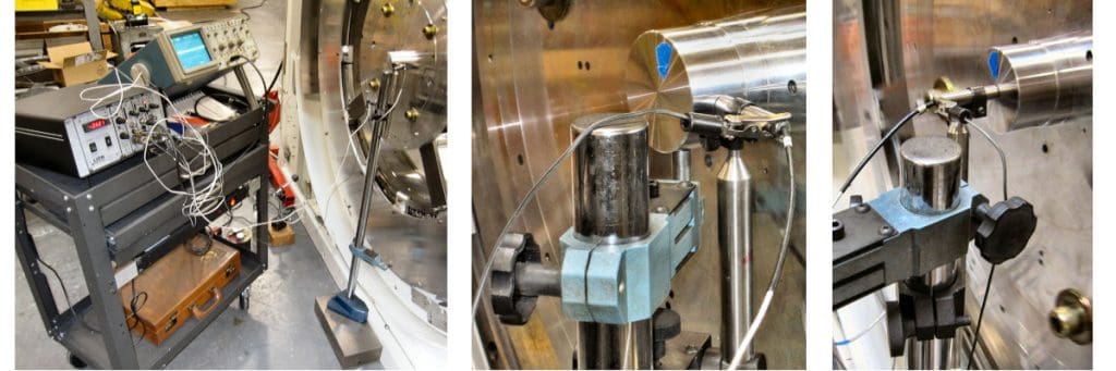 Still, there are more advantages to air bearing systems, one being increasing the resolution of the system over the rolling element bearings. This became apparent during the measuring of the precision of the axis of rotation. Axis of rotation metrology is defined in the standards under ASME B89.3 4-1958 (“Axes of Rotation, Methods for Specifying and Testing”) and ISO-230-7 (“Geometric Accuracy of Axes of Rotation”). These are the standards used to qualify the likes of roundness measuring machines and precision machine tool spindles. Targets are mounted on the rotating part and precision sensors (usually capacitance probes) are used to measure axial and radial displacements (Figure 4).