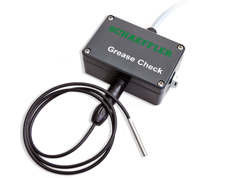 The Schaeffler GreaseCheck is an optical sensor system that allows changes in the condition of the grease to be detected early. The sensor head is just 5mm wide and records three parameters: turbidity, water content, and grease temperature. Customers can classify the condition of the grease during operation as ‘good’ or ‘bad’ by setting individual threshold values for turbidity and water content. A particular benefit is that wind farm operators can use the Schaeffler GreaseCheck to determine relubrication intervals for new turbines without having to go through the costly process of taking and analysing grease samples. Because the condition of the grease is continuously monitored, operators can respond by initiating maintenance measures when changes are detected, in some cases even before bearing damage occurs. If a sufficient number of turbines are installed, the relubrication intervals can be scheduled based on requirements and the maintenance outlay reduced even further in the medium term.