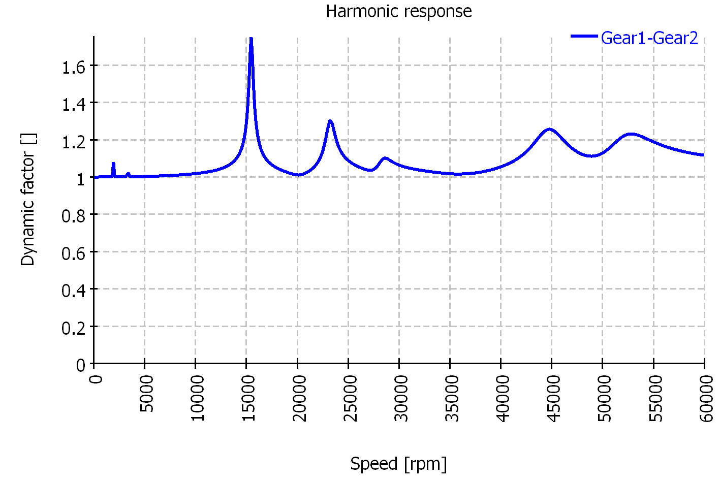 Evaluation could be done as dynamic factor over speed for gear pairs for example. The peaks show possible resonances, but for the amplitude the influence of damping is a problem as there are restricted possibilities to define damping and usually there is only little knowledge about damping too. Like the variation of gear forces also amplitudes for bearing forces can be shown.
