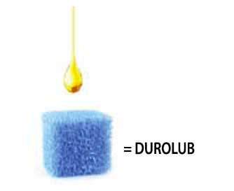 DUROLUB is a mix of ultra-high molecular polymers and synthetic base oils. It is filled into the free space inside the bearing and then specially heat treated to a solid porouse matrix compound. There are only very narrow gaps around the rolling elements and to the raceways. The compound contains about 3-5 times more oil than greased bearings. With increasing operating temperatures, the polymer expands while the oil is reducing it´s viscosity – the bearing receives an appropriate amount of lubrication. While cooling down there is a reverse effect – the excess oil is soaked backed into the polymer.