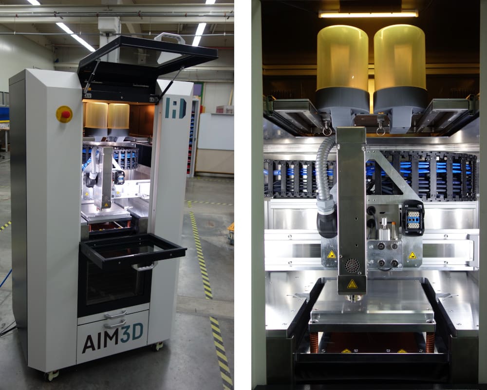 The founders of AIM3D GmbH, all from the University of Rostock in Germany´s East Coast aimed to drastically reduce the cost of the additive manufacturing of metal parts. In their experience, the widespread use of additive manufacturing had so far failed because of high material and machine costs.  Still today, many 3D printers only accommodate a single material and often rely on expensive materials for printing. “It was our ambition to create ´the´ machine tool of the 21st century that has a place in any company, much like a lathe or milling centre in the 19th century,” says Robert Radon, Head of Development Mechatronics.