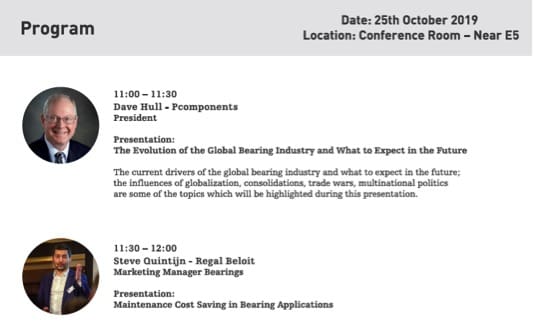 The 2nd BearingEXPO conference will be presented on Friday 25 October during the PTC Asia show in Shanghai, at the conference room in the bearing and power transmission Hall E5. You can check the details of the upcoming conference below and at the following links the summary of the 2018 conference and the details of previous year’s conference.