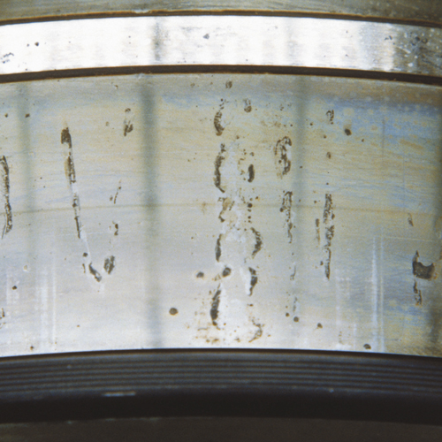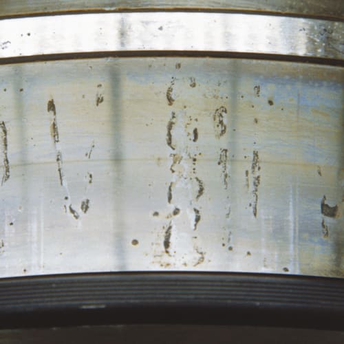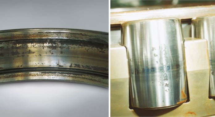 Bearing rust and corrosion are pits on the surface of rings and rolling elements and may occur at the rolling element pitch on the rings or over the entire bearing surfaces.