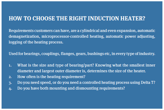 In this article we are discussing “hotmounting”. A bearing (or other part) is heated prior to mounting, allowing the inner ring to expand. Then, you can mount the bearing on the shaft. When it cools down it shrinks and tightens around the shaft.