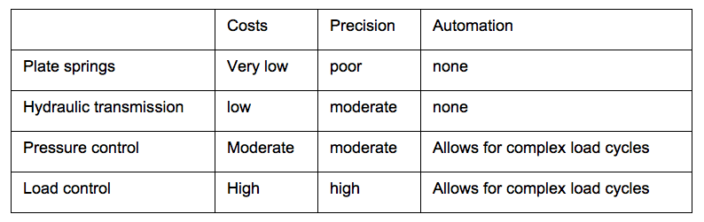 The fourth method achieves higher precision by measuring the loads directly with load cells instead of measuring the hydraulic pressure. Elgeti Engineering test rigs are also compatible with this approach as shown in figure 6. The characteristics of the different load application methods are summarized in table 1.