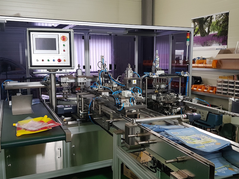 The oval shaped track system also allows the input and output sections to be located close together, making one-person operation possible. Conveniently, one person can reach both the input station where the raw material is loaded and the output station where the finished pouches are released, saving costly labour.