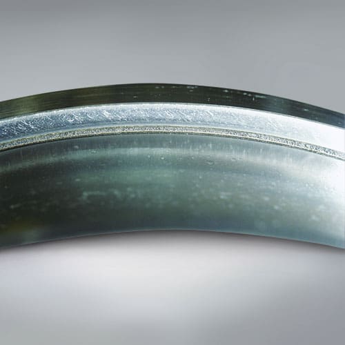 Scoring is surface damage due to accumulated small seizures caused by sliding under improper lubrication or severe operating conditions. Linear damage appears circumferentially on the raceway and roller surfaces. Cycloidal shaped damage on the roller ends and Scoring on the rib surface contacting roller ends also occur.