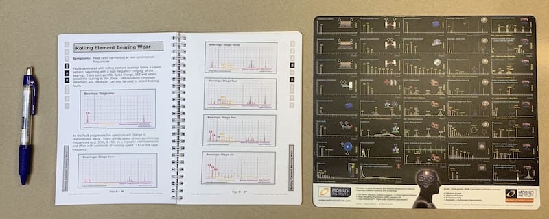 TA’s instructors use 50% of their time in the field. This is clearly reflected in the training manuals, as much knowledge is based on field reports. It is often stated, that TA material is not training manuals, but more a condition monitoring encyclopedia. A lot of knowledge can be found in the TA manuals, that is not mandatory by ISO, but has been included by TA to provide the complete picture of this area. TA instructors bring a huge number of flight cases to the lectures with motors, rotor kits, instruments and sensors etc to demonstrate measurement techniques live during the classes, reflecting their hand-on experience. TA also offer a signature booklet and signature wallchart, but these are not part of the training material and must be purchased separately: