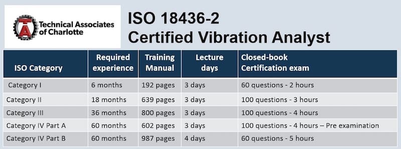 Note: The length of Cat I-III is one day shorter, than required by the ISO 18436-2 standard. TA makes up the required ISO training hours by making the students do “self study”. Practically, the self study approach doesn’t always work out well, especially for overseas students. It is not possible to have the material shipped ahead of time, so you will not be able to prepare before coming to class.