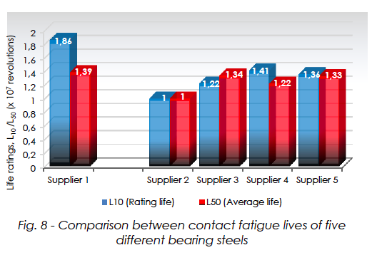 The statistical values listed in table 4 and depicted in figure 8 point out that the test specimens made of our steel have the highest values for both rating and average life.