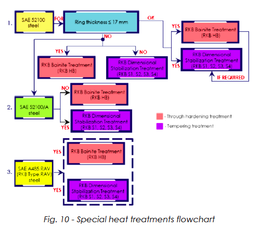 In addition, if the thickness of rings does not exceed 17 mm, also the RKB Dimensional Stabilization Treatment can be applied to both bearing rings made of SAE 52100 steel. RKB has the ability to conduct the Dimensional Stabilization Treatment for operating temperatures up to