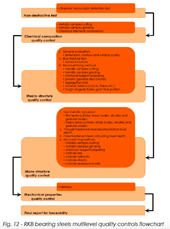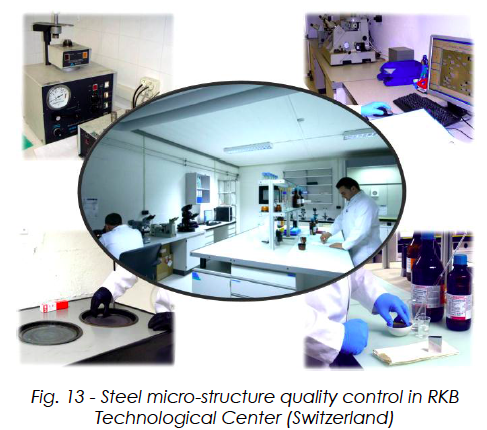 The quality control performed by RKB on its steel and final products takes place on a multilevel basis by means of non-destructive tests, chemical composition controls, macro and micro-structure evaluations, mechanical properties measurements and final report for traceability (figure 12).