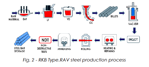 To respect the limits imposed by the latest international standards in terms of non-metallic inclusions, that is cleanliness, the RKB Type.RAV steel is subjected to a rigorous purification process called Vacuum Degassed Electroslag Remelting or VAC-ESR (figure 2).