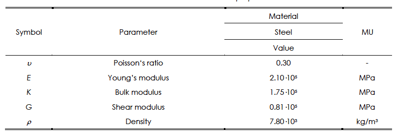 For each deformable body an elastic material behavior has been assigned, meaning that to a single admissible stress value corresponds only one strain value. The plastic material behavior was not purposely assigned for this evaluation in order to decrease the analysis computational time. The mechanical properties of the steel assigned to the model components are presented in Table 2. Steel has been used as a material for all metallic components, while rubber has been selected for the clamping ring between outer ring split parts. Only the cages have been modeled as rigid or undeformable bodies, since their behavior is not part of the present evaluation.