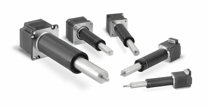 Typical stepper motor driven positioning mechanics, including stepper actuators, drive a lead screw that translates the motor’s rotary motion into linear motion and force by way of a captive nut. This requires additional support components and an external anti-rotational device for the nut. Whilst some machine designers might choose complete position stages that have these features built-in, or design their own anti-rotational mechanics, space restricted and especially shorter travel linear axes often require custom made mechanics which add unwanted length through bearing blocks and couplings.