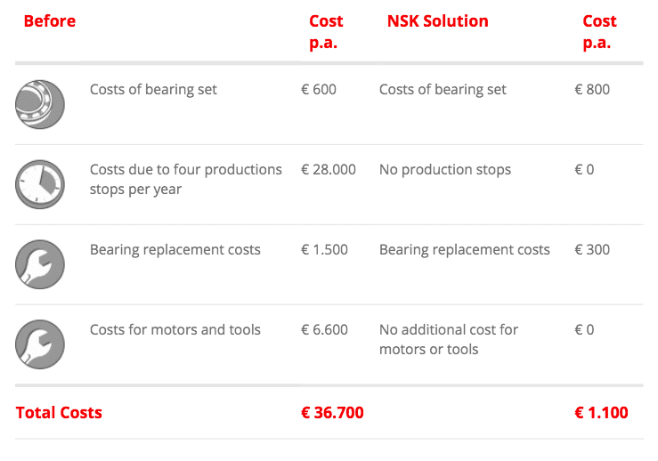 - As a result of the analysis, NSK engineers recommended to redesign the spindle with four bearings combination instead of three row bearing set