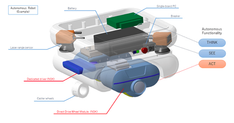 NSK Ltd. (NSK; Headquarters: Tokyo, Japan; President & CEO: Toshihiro Uchiyama) has developed a direct drive wheel unit ideal for collaborative robots, autonomous service robots, and power-assist push carts.