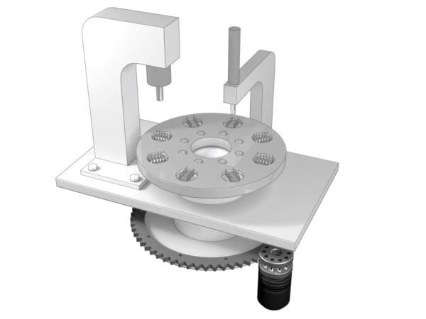 In one recent industrial application, a pharmaceutical company uses a CRD MR 150 indexer to quickly and smoothly position vials below a dispensing system that deposits a small amount of material in each vial. The indexer’s compact footprint makes it ideal for lab work, and its large open centre enables the dispensing system to be located in the centre of the dial, which saves space.